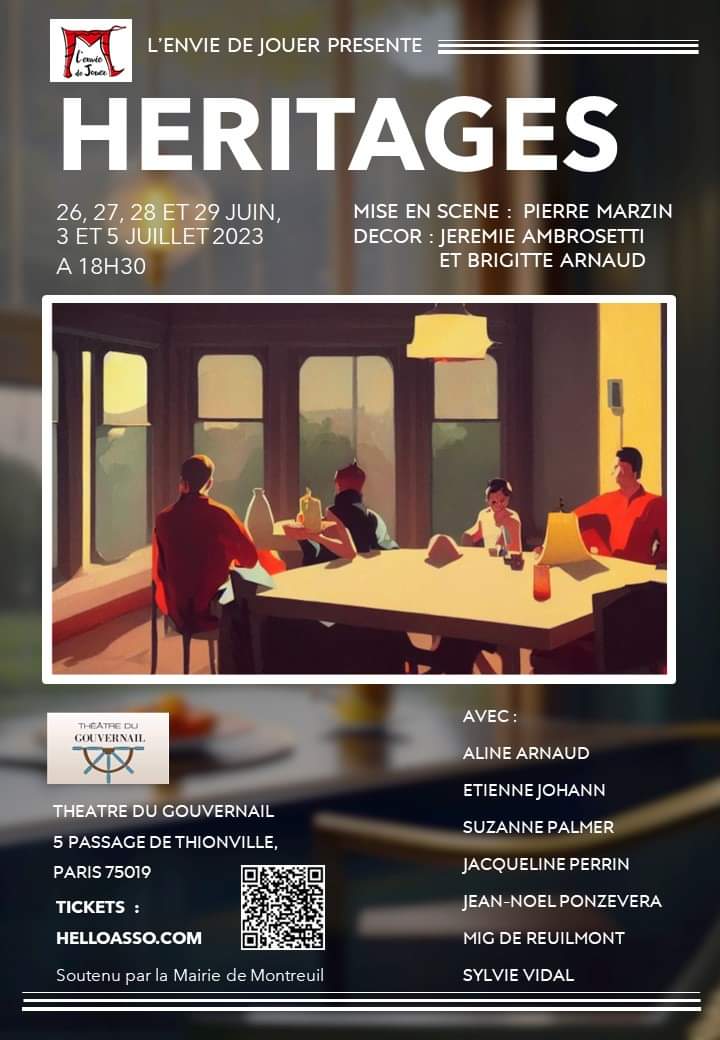 Théâtre du Gouvernail 5 Passage de Thionville, Paris, Département de Paris, France“HERITAGES” est une fresque de la comédie familiale au cours du XXe siècle. Une parabole sur la grandeur et la décadence de la bourgeoisie occidentale, cinquante ans de vie dans une salle à manger racontée avec cocasserie et émotion. Pièce centrale, la salle à manger est le véritable témoin des évolutions d’une société américaine aisée […]