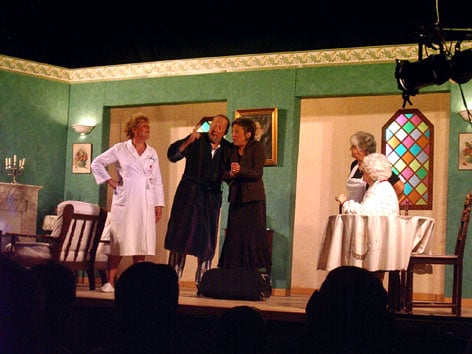 Pour parvenir à ses fins, elle imagine de lui faire signer subrepticement un document lui donnant l’usu-fruit de la propriété. Mais toutes ses tentatives pour obtenir cette signature tant convoitée vont échouer les unes après les autres. Elle imagine alors une ultime solution : avec l’aide de trois amis déguisés en fantômes, elle va essayer de faire croire à sa tante et à son oncle que le manoir est hanté. Pourtant, là encore, elle va se heurter à des difficultés imprévues. Un fou échappé de l’asile, un couple épique de cambrioleurs, un oncle se transformant en pépé flingueur, aidé par la bonne et l’infirmière, tout va contribuer pour Clotilde à un échec cuisant. Et c’est aussi sans compter sur l’arrivée inattendue du « vrai » fantôme du manoir ! Quant à la tante, sourde « comme trente-six mille pots », elle traversera cette aventure dans une complète insouciance.