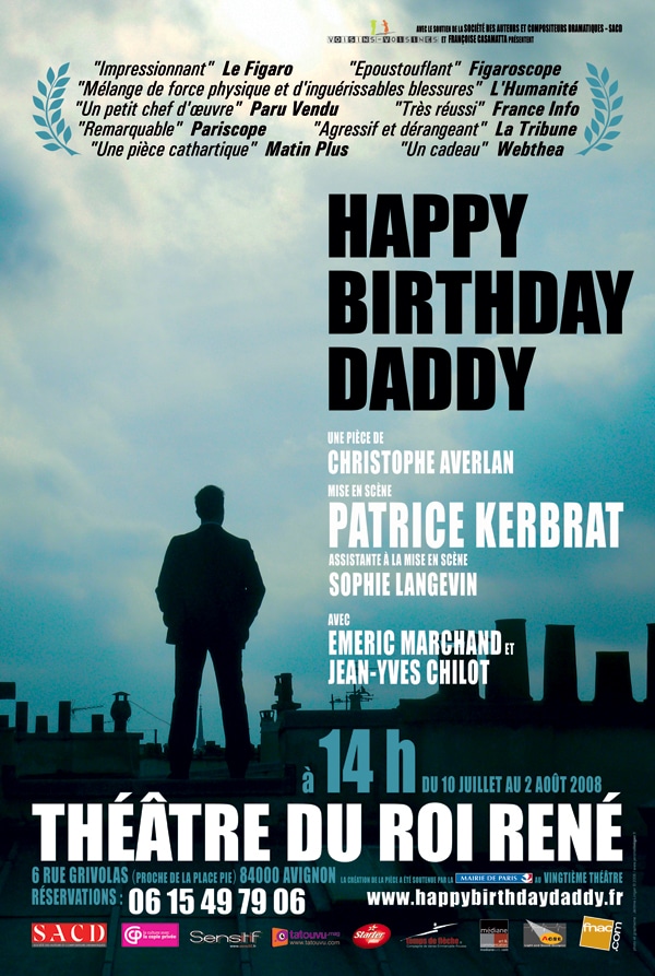 Cette pièce a été à l’affiche au Vingtième Théâtre, en 2007, dans une pise en scène de Patrice Kerbrat, avec Emeric Marchand et Jean-Yves Chilot, puis reprise au Festival Off d’Avignon 2008.Elle a reçu le soutien de la fondation Beaumarchais et du Fonds SACD.