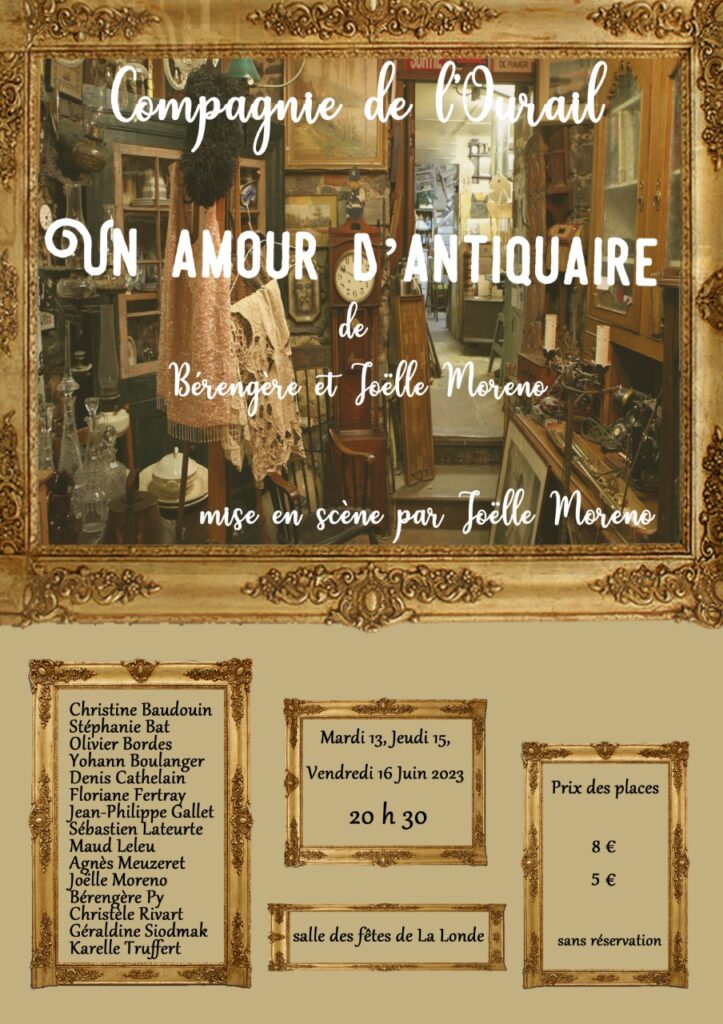 Quinze comédiens vous feront vivre la vie secrète de Lucie, une antiquaire dont la boutique risque de disparaître. Le danger ne vient-il pas de l’intérieur ? Victoire, l’employée de Lucie semble bien décidée à couler la boutique. Serait-ce Paulette, la femme de ménage très maladroite ou encore Bonna et Claude, des voleurs peu crédibles ? Entourée de sa famille et d’un expert en Art, Lucie arrivera-t-elle à sauver ce lieu qu’elle aime ? Des objets tels qu’un pot de chambre, un Stradivarius, une lampe de mineur, un tableau de Turner auront un rôle important à jouer.